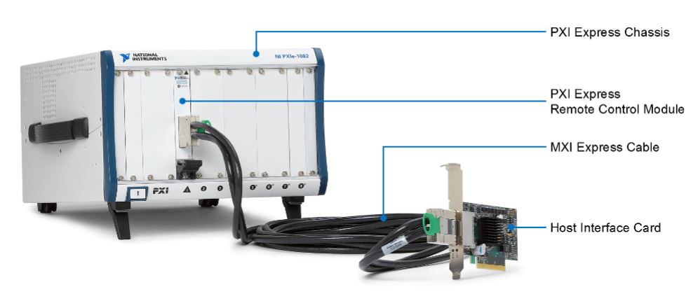 远程控制器PCIe设备和一条MXI电缆即可。您可以查寻机箱的《用户手册》以了解它是否具有集成式MXI控制器。