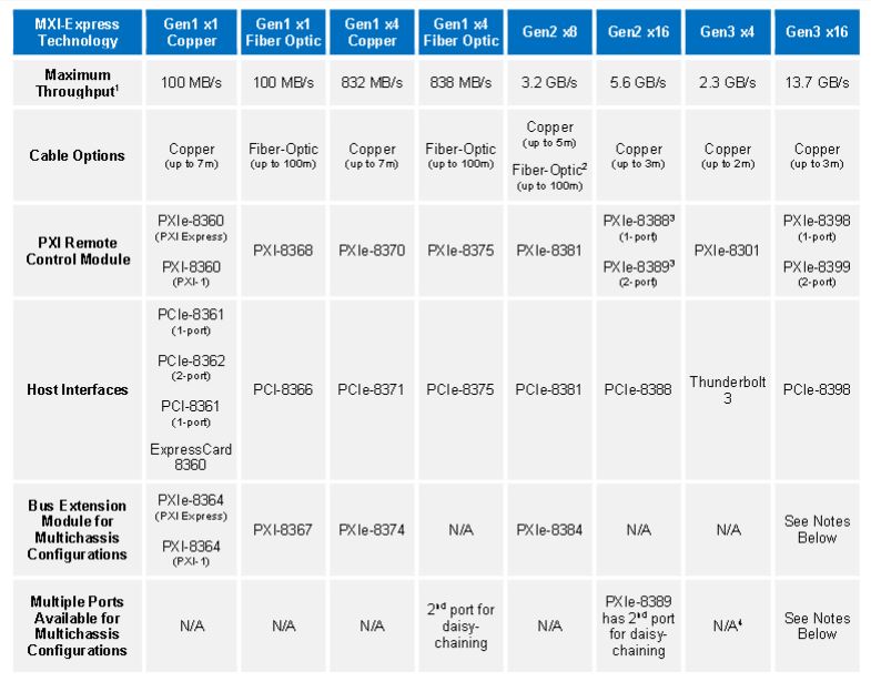 NI PXI 配置指南来构建系统。您也可以使用下表来为您的MXI系统选择合适的PXI(e)/ PCI(e)卡配对: