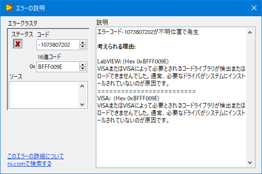 LabVIEWでエラー -1073807202が発生します。