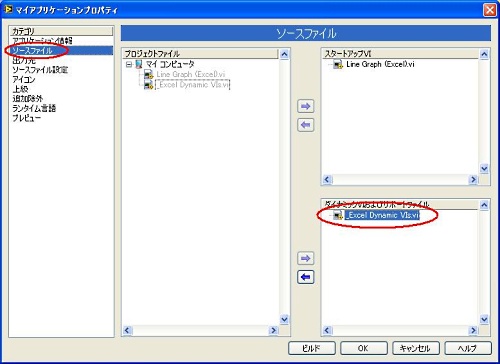 - LabVIEW 7.xでWordやExcel dynamic VIを追加するには、アプリケーションビルダのソースファイルタブをクリックして、ダイナミックVIを追加...をクリックします。