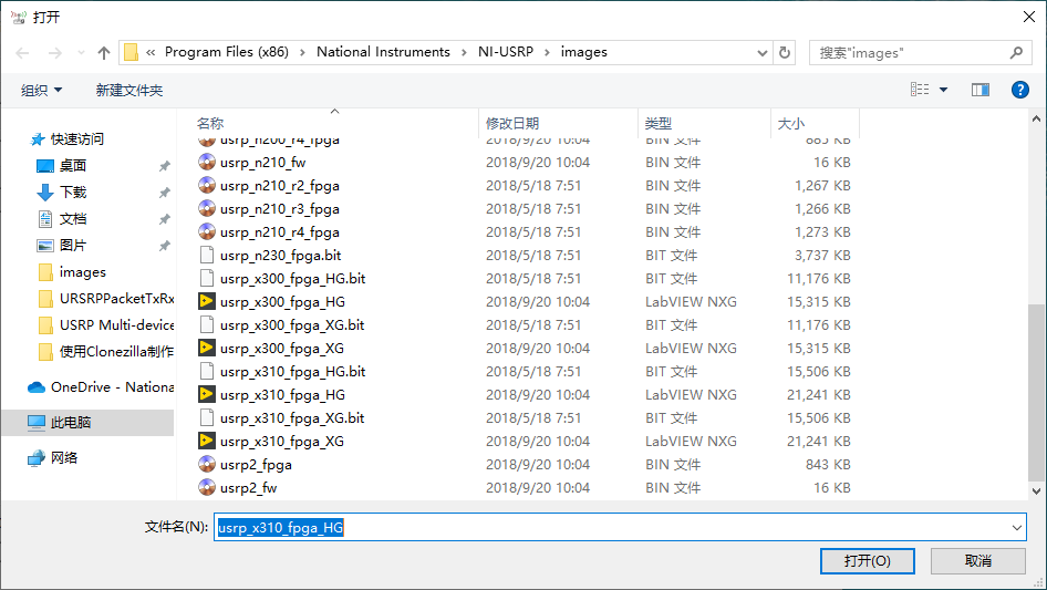 2. FPGA 이미지 파일의 버전이 업데이트중인 장치의 보드 개정과 일치하는지 확인하십시오. 파일 이름이 .bit 인 파일은 오픈 소스 환경을 위한 FPGA 이미지이고 .lvbit가 있는 파일은 National Instruments 환경을 위한 것입니다.