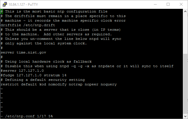 NTP 서버가 설치되어 백그라운드에서 실행 중이어야 합니다. 이제 설정 파일에 원하는 NTP 서버를 지정합니다. 이 예에서는 time.nist.gov 서버를 사용합니다.