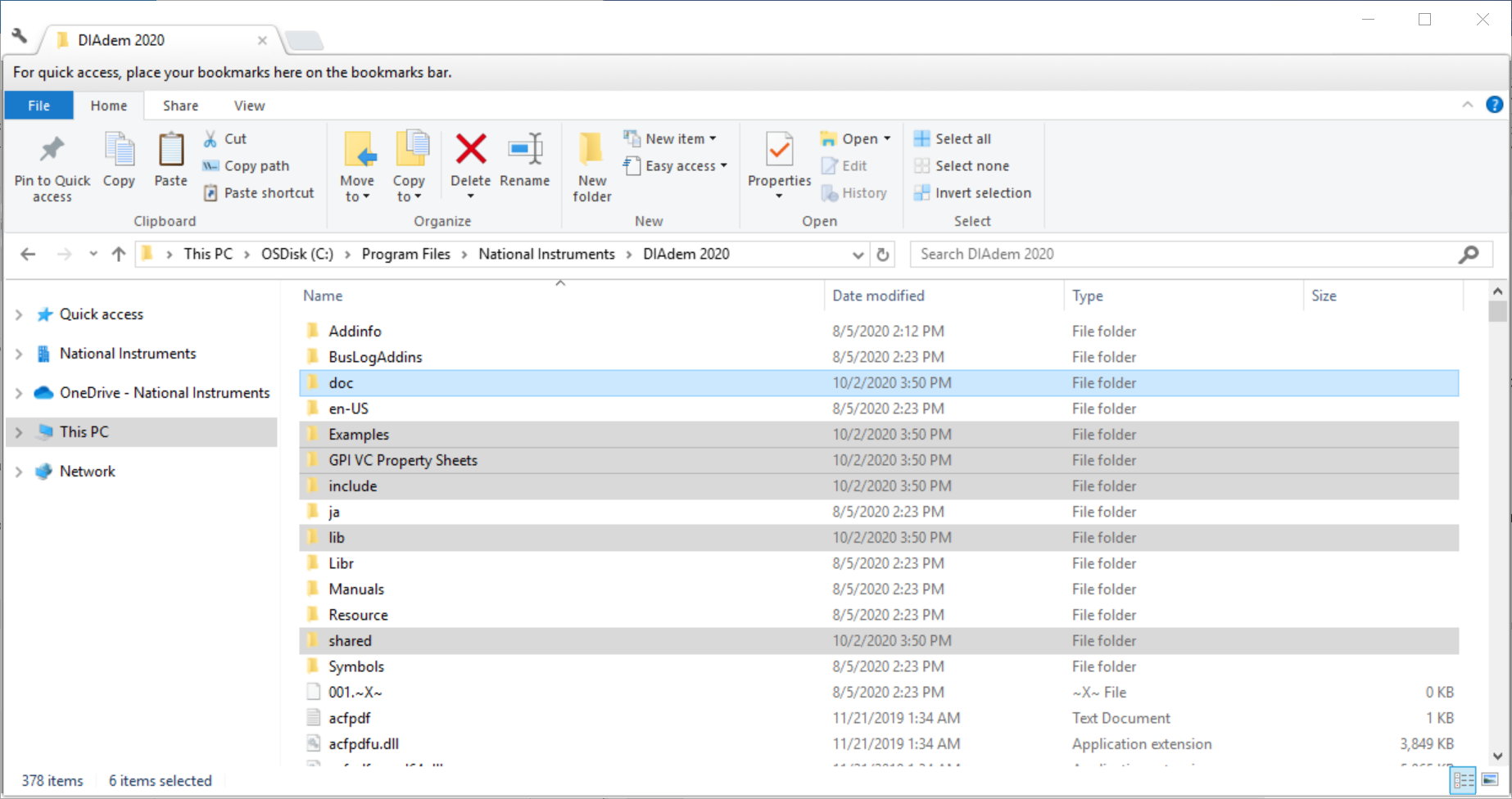 - Copy the files to the DIAdem program directory, e.g. C:\Programs Files\National Instruments\DIAdem2020.