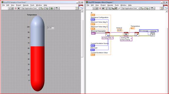 Todos los RTD generalmente vienen en una combinación de color de cable rojo y negro o rojo y blanco. El cable rojo es el cable de excitación y los cables negro o blanco son cables de tierra. Si no está seguro de qué cables están conectados a qué lado del elemento resistivo, puede usar un multímetro digital (DMM) para medir la resistencia entre los cables. Si hay una resistencia cercana a 0 Ω, entonces los cables están conectados al mismo nodo. Si la resistencia está cerca de la resistencia de calibre nominal (100 Ω es una resistencia de calibre nominal de RTD común), entonces los cables que está midiendo están en el lado opuesto del elemento resistivo. Además, consulte la especificación RTD para encontrar el nivel de excitación para ese dispositivo en particular.